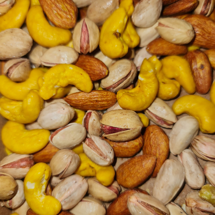 ترکیبات: بادام هندی زعفرانی _ پسته احمدی نمکی _ مغز بادام درختی نمکی