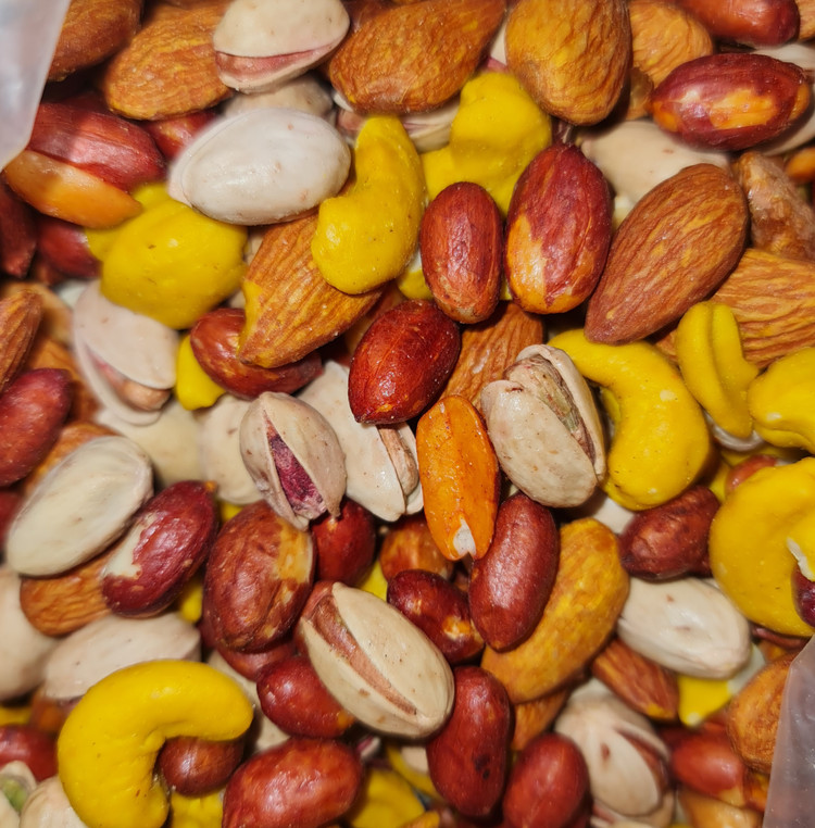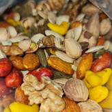 ترکیبات: هر کدام 200 گرم : پسته احمدی نمکی - بادام هندی زرد - تخمه آفتاب گردان زوج 190 دانه ( درشت ) - تخمه کدو نمکی - آجیل مغز - آجیل 4 مغز - چوپی پیاز جعفری - چوپی کچاپی - مغز بادام درختی نمکی - کدو اویشنی8 - تخمه پیاز جعفری
